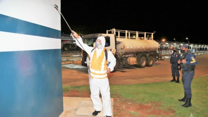 As ações de desinfecção foram retomadas pela Prefeitura no dia 12 de janeira, com a aplicação do produto nos 8 terminais de transbordo do transporte coletivo da cidade e no Ponto de Integração Hércules Maymone. Também já foi feita a higienização de várias repartições públicas.