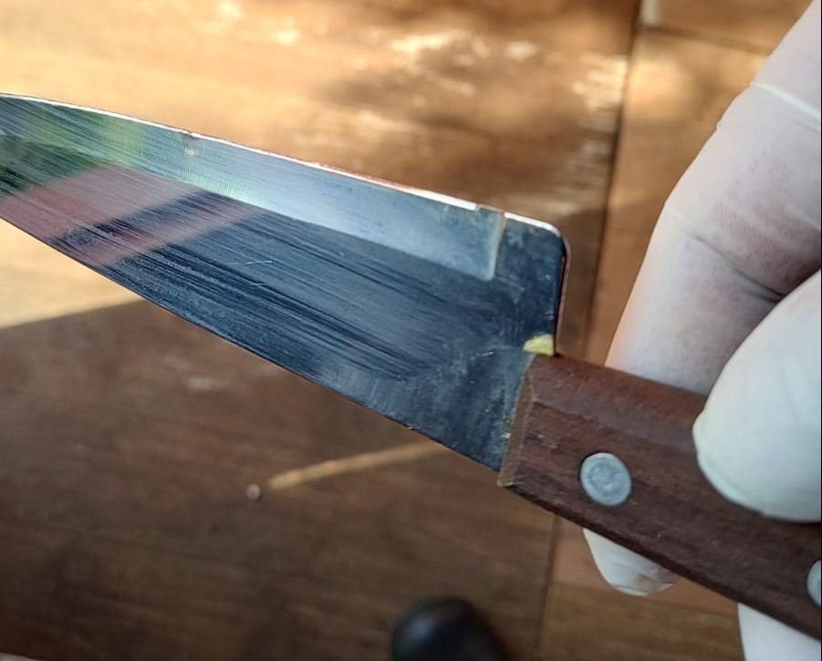 Para se defender, ela tomou uma das facas do marido e lhe deu um golpe no peito. Em seguida, saiu correndo para a casa da vizinha.