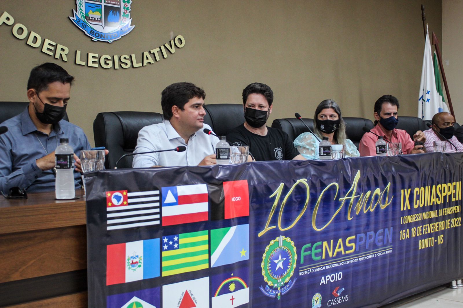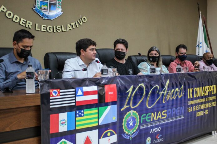 O presidente da Assomasul, Valdir Junior, prefeito de Nioaque, participou do IX Congresso Nacional da FENASPEN, o CONASPEN, realizado pela Federação Sindical Nacional de Servidores Penitenciários e Policiais Penais (FENASPEN), com o apoio do Sinsap/MS (Sindicato dos Servidores da Administração Penitenciária do Estado do Mato Grosso do Sul), nos dias 16, 17 e 18 de fevereiro, na Câmara de Vereadores da cidade de Bonito-MS.