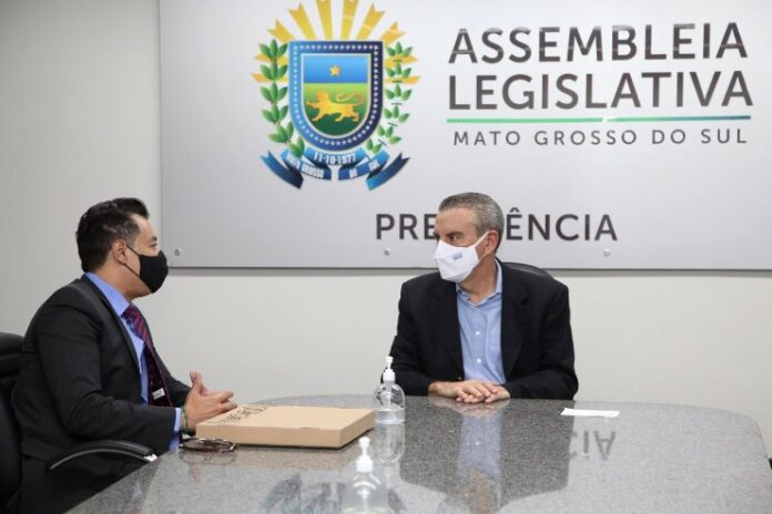 O presidente da Assembleia Legislativa de Mato Grosso do Sul (ALEMS), deputado Paulo Corrêa (PSDB), recebeu visita institucional do deputado estadual do Ceará Leonardo Araújo (MDB). O encontro realizado nesta quinta-feira (28) teve o objetivo de debater questões relacionadas a energias renováveis.