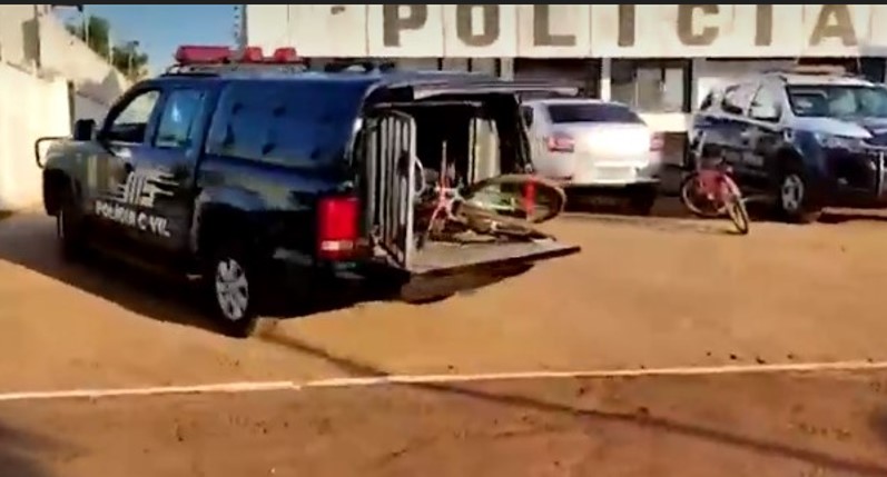 Viatura da Polícia Civil chegando na delegacia de Itaporã (Foto: Reprodução)