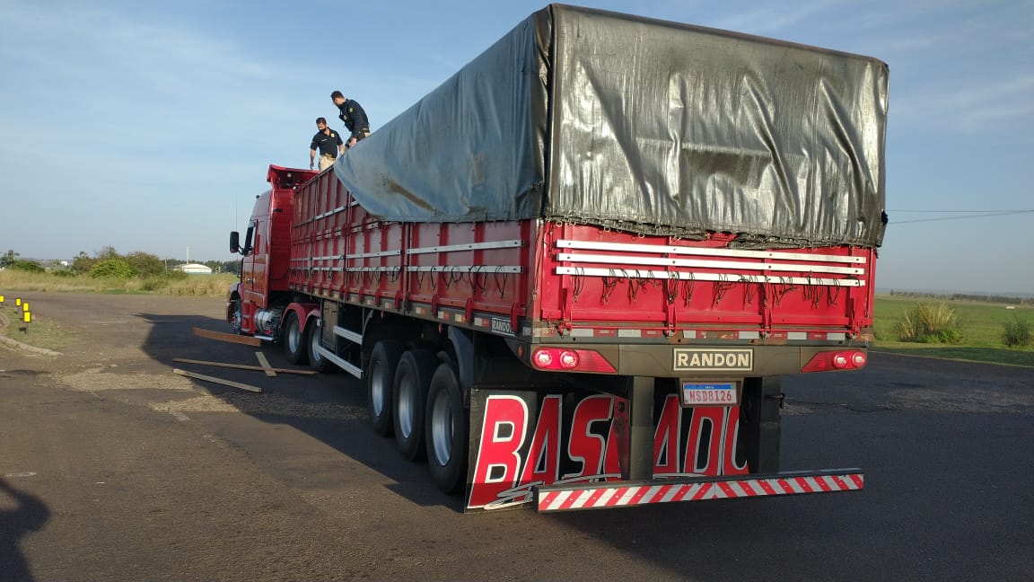 Segundo informações da PRF, foi abordado o condutor de um trator Volvo acoplado em semi reboque LS, por volta das 15h30, com uma carga de madeira. Em vistoria, foram encontrados os tabletes de maconha, escondidos junto as madeiras.