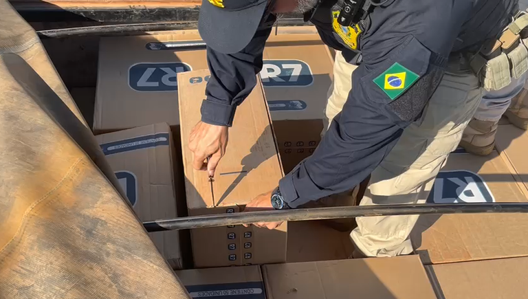Conforme o registro, a equipe fazia a fiscalização da rodovia federal BR-163 quando avistou uma carreta bitrem, modelo Volvo/Fh, em atitude suspeita.