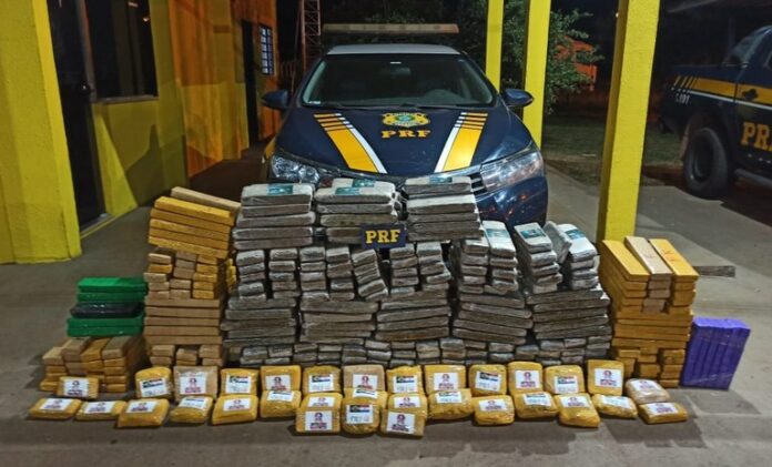 PRF apreende 340 quilos de maconha e recupera veículo roubado