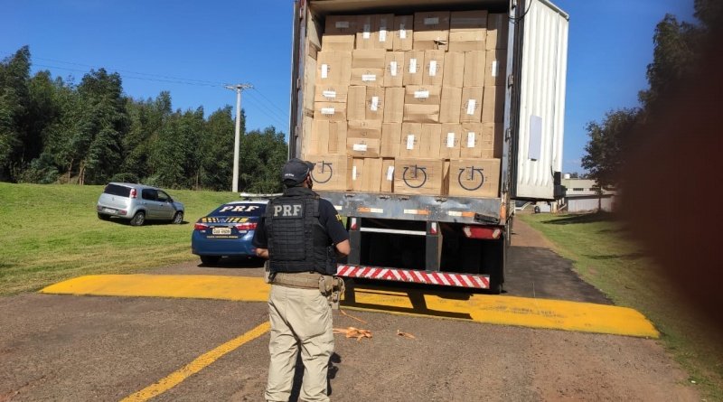 No caminhão foram localizados os cigarros de marcas estrangeiras, oriundos do Paraguai. O veículo foi encaminhado para a Receita Federal.