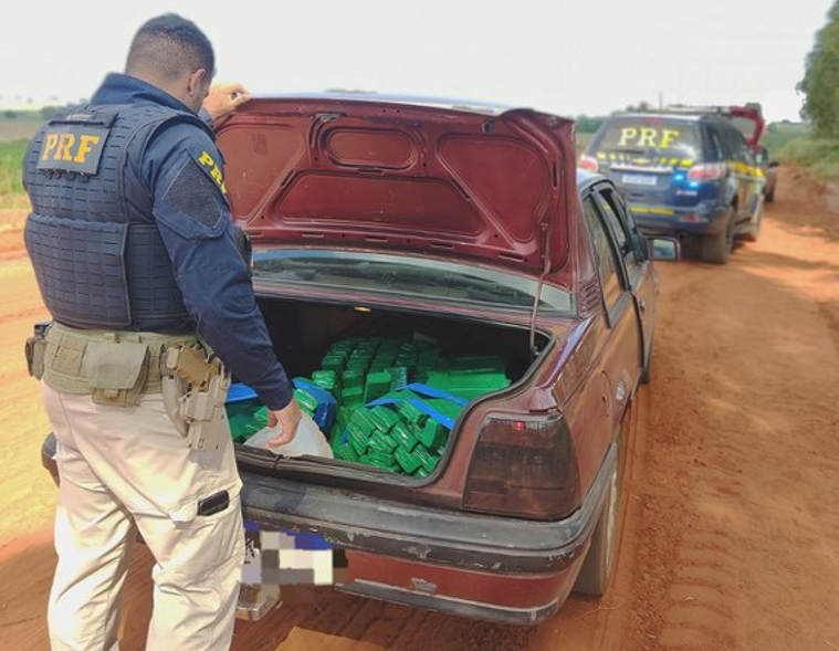 A Polícia Rodoviária Federal (PRF) apreendeu 104 quilos de maconha e prendeu o batedor da droga, na tarde desta quinta-feira (14), em Mundo Novo.