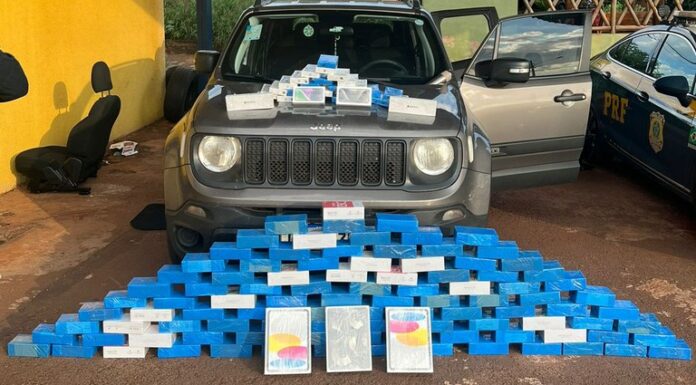 Um carregamento com 131 telefones e outros eletrônicos contrabandeados foi apreendido pela Polícia Rodoviária Federal (PRF) na manhã desta terça-feira (20), em Dourados.