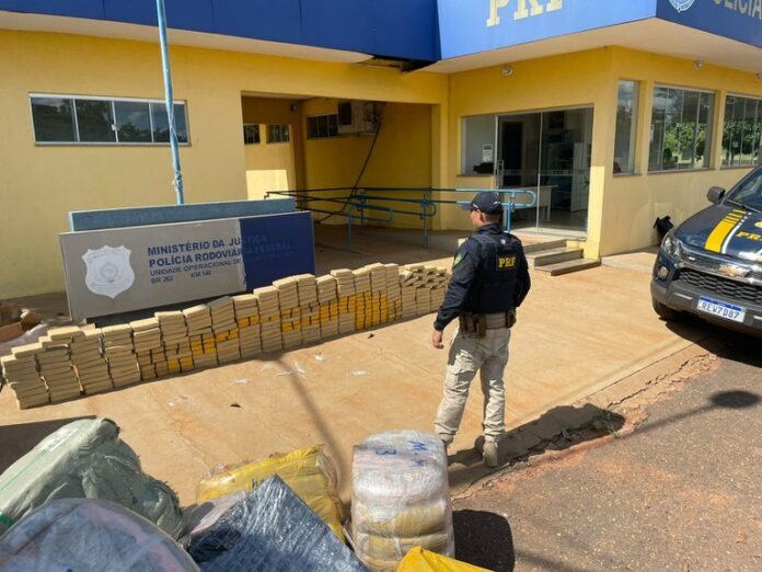 A Polícia Rodoviária Federal (PRF) realizou a apreensão mais de 260 quilos de cocaína e diversos fardos de produtos contrabandeados e prendeu o homem que transportava a droga e os produtos, no início da tarde desse domingo (20), em Água Clara.