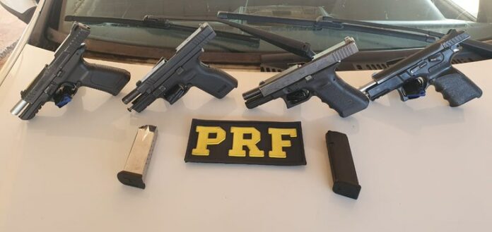 Conforme a PRF, os policiais rodoviários federais fiscalizavam na BR-463, quando abordaram um Fiat/Weekend. Durante a entrevista, o condutor e a passageira disseram ser casados e que estariam viajando pela região em lua de mel. “Mas, desconfiada do nervosismo apresentado por ambos, a equipe realizou uma busca minuciosa no veículo e descobriu um compartimento oculto no painel. Lá encontramos as quatros armas”, registrou a PRF.