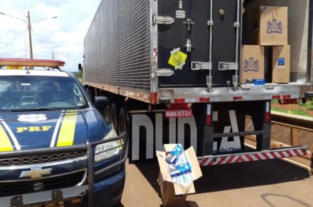 A Polícia Rodoviária Federal (PRF) de Dourados apreendeu mais uma grande carga de cigarros na BR-163, em Caarapó, ontem (10). Foram contabilizados 680 caixas, que correspondem a 34 mil pacotes.