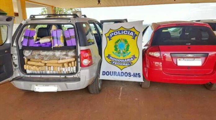 A Polícia Rodoviária Federal (PRF) apreendeu ontem (4), no porta-malas de um veículo Ford Ecosport, 187 quilos de maconha e 1,7 quilos de cocaína. Quatros traficantes foram presos.