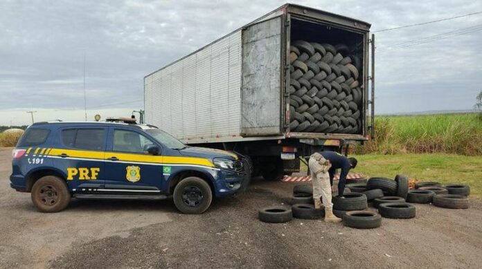 Na inspeção da carga, foram encontrados mil pneus novos e somente 250 carcaças de pneus.