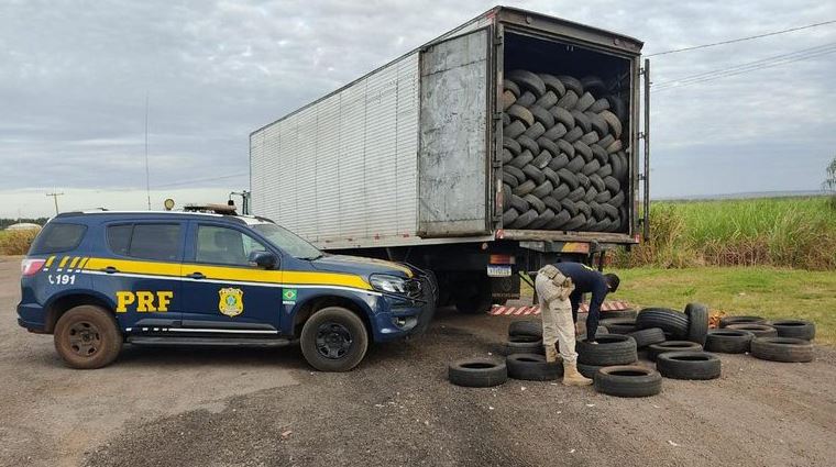Segundo nota da PRF, os policiais abordaram o veículo com placas do Paraná e durante entrevista, o motorista alegou que estava levando carcaças de pneus para cidade paranaense de Arapongas, sendo apresentado uma nota fiscal que constava 980 unidades.