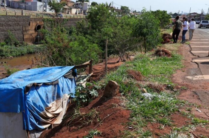 Gilmar dos Santos Gonçalves mora em uma das principais avenidas de Campo Grande, mas quase ninguém vê. A moradia dele está escondida. É um barraco improvisado, com pedaços de madeira, escorado na encosta do rio Anhanduí, no meio da Norte-Sul – antigo apelido da avenida Ernesto Geisel e suas continuações, chamada assim por cortar a cidade de uma ponta a outra.