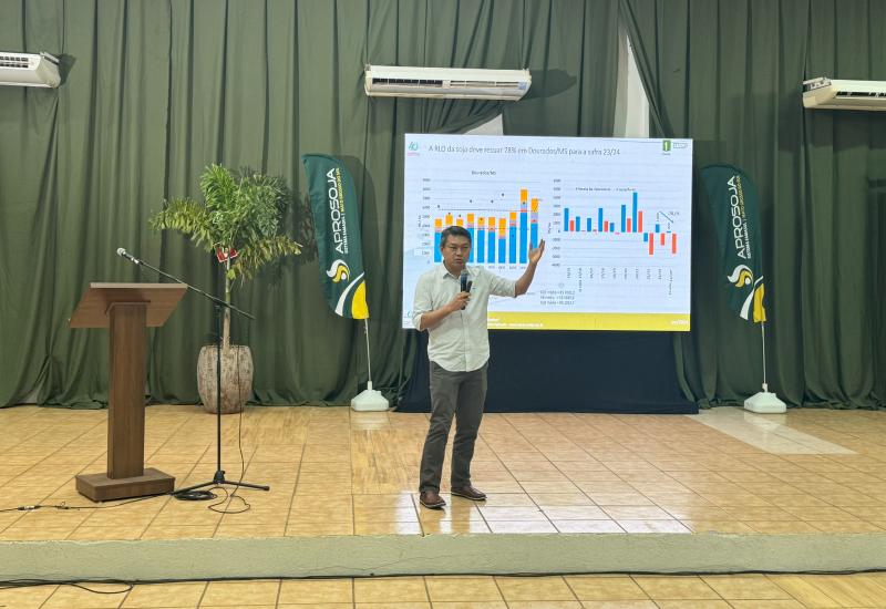 Osaki apresentou uma radiografia das safras de soja e milho no Estado. “É uma safra diferente! Bem diferente da safra 2022/2023 . Nós tivemos a frustração, uma reação dos preços, e você começa a perceber que a capacidade do produtor de sanar seus investimentos começa a entrar em risco.  Em 2023, começamos a entrar abaixo da linha média das últimas sete safras e isso começa a apresentar um sinal de alerta por algumas razões, em função da rentabilidade que nós estávamos vivenciando desde 2019/20 para cá,  os valores dos arrendamentos começaram a ficar mais caros, os valores das máquinas também começaram a ficar mais caros. De 2021 a gente começa a virar a chave, e essa região de vocês de Mato Grosso do Sul começa a ter uma variação climática mais presente no dia a dia do que no passado”.