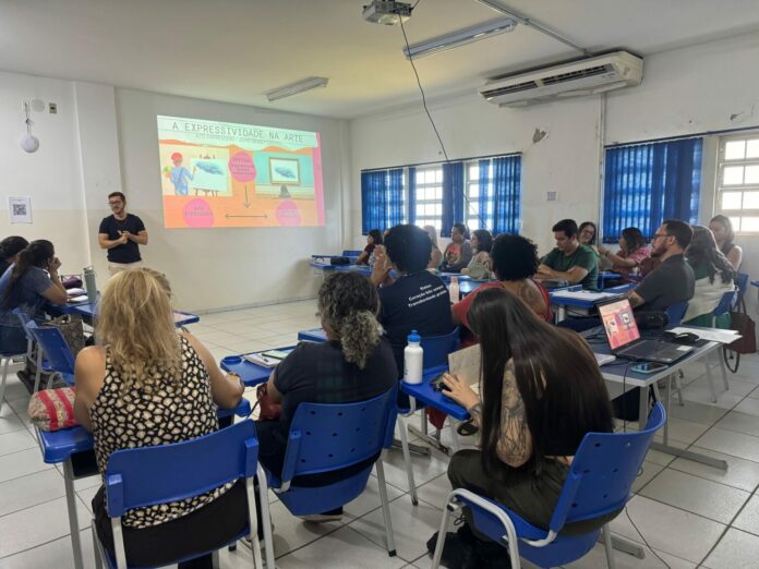 Cátia Oliveira, formadora da SEMED para professores e coordenadores dos 4º e 5º anos explica como funciona. “Serão duas formações, uma no primeiro semestre e outra no segundo. E as formações têm o objetivo de enfocar a metodologia, a estratégia didática que o professor vai utilizar nas aulas do projeto, que não pode ser a mesma coisa da sala de aula. O aluno tem que ter um atendimento mais personalizado. Esse estudante que vem para gente, ele tem que ter um atendimento de acordo com a necessidade e para isso a gente aposta nas formações continuadas dos professores e coordenadores do projeto”.