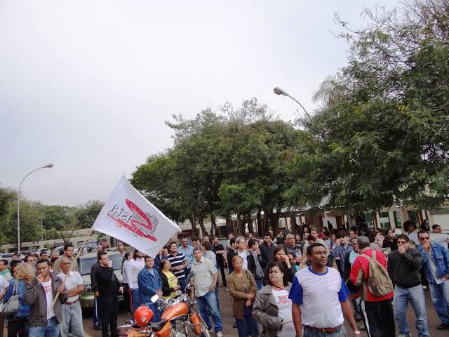 A manifestação começou por volta das 9h, na Rua 14 de julho com Rua Barão do Rio Branco, e é contra a Reforma Administrativa que visa a privatização e desmonte dos serviços públicos, direitos básicos garantidos pela constituição à população.