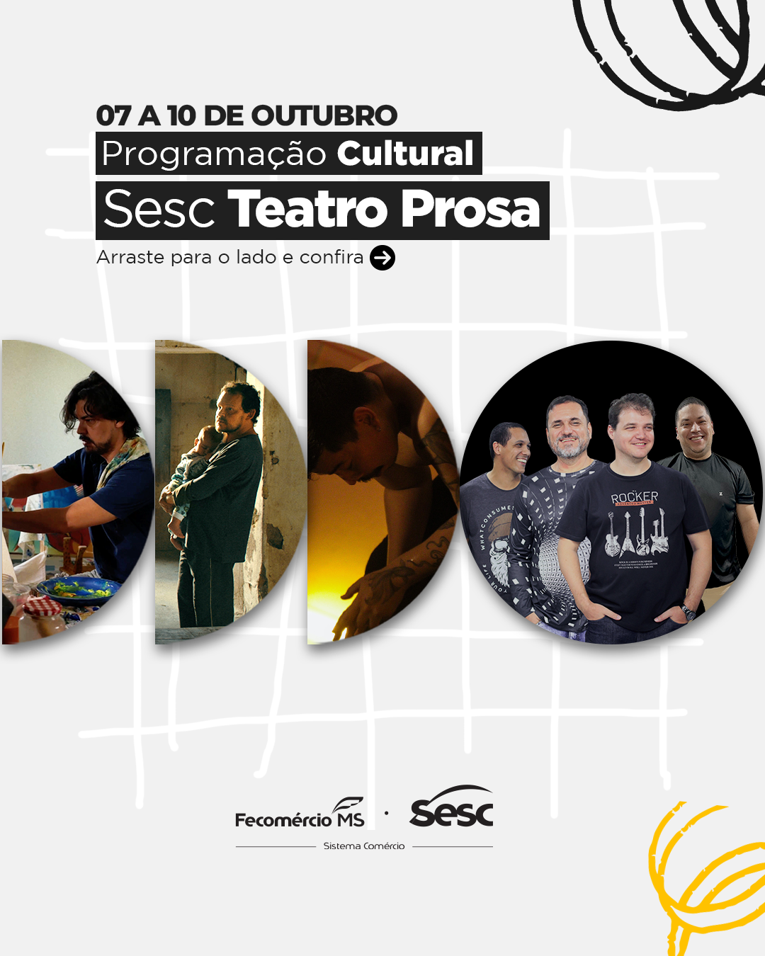 Quinta-feira, 09/10, é dedicado à música com o show “Haiwanna 28 anos de Estrada” (Classificação Livre). Ícone do rock sul-mato-grossense, a banda celebra quase três décadas de atuação em palcos e cidades do estado, trajetória marcada por um público fiel e por encontros com grandes nomes da cena nacional. No Sesc Teatro Prosa, o grupo brinda a própria história com fãs, amigos e admiradores.