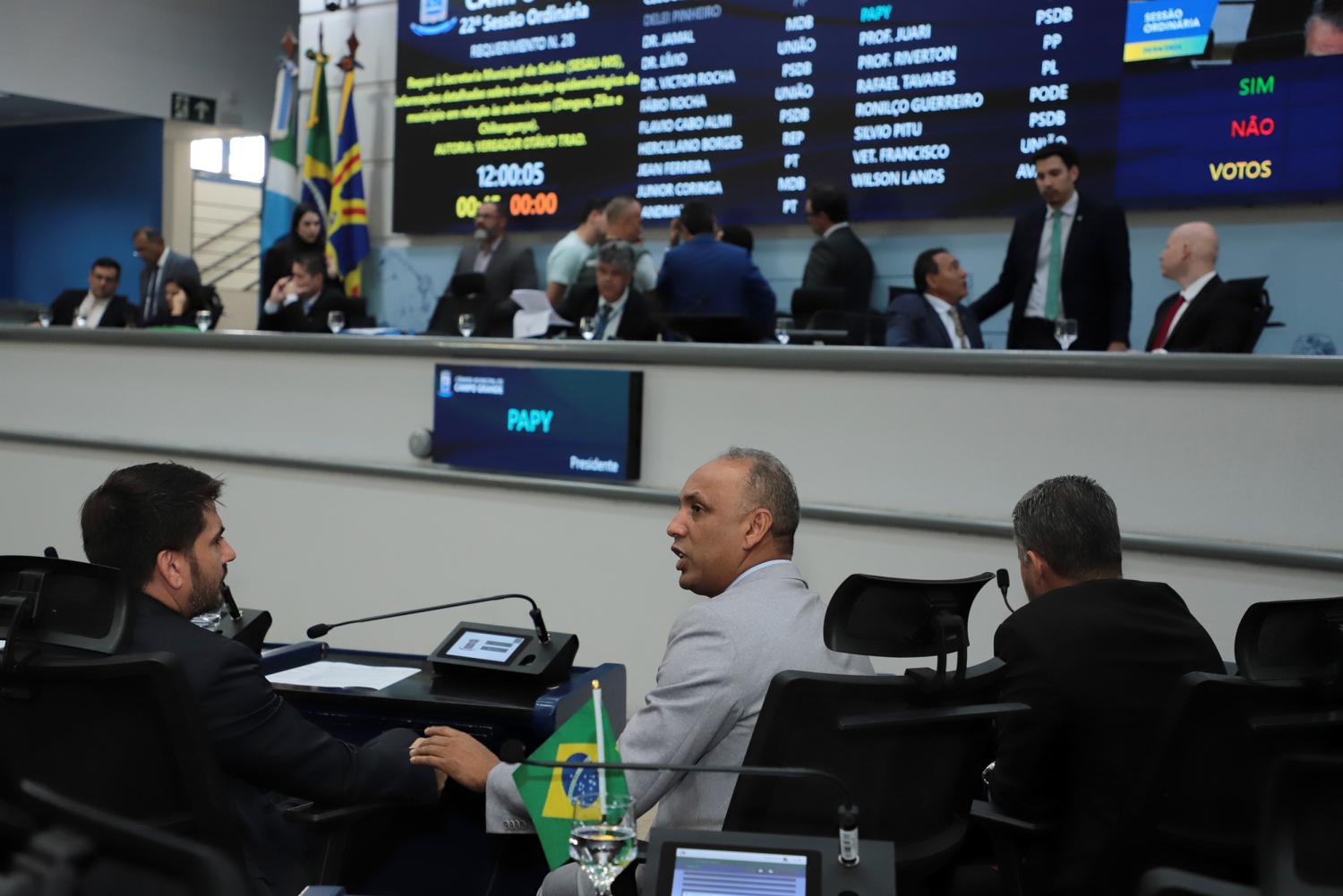 Três projetos foram aprovados pelos vereadores da Câmara Municipal de Campo Grande, na sessão ordinária desta quinta-feira, dia 30. Duas proposições são voltadas à área da saúde, prevendo teste para diagnóstico de autismo e saúde mental para profissionais da segurança. Também foi aprovado projeto para proibição do uso do termo gratuito em eventos e serviços do poder público.