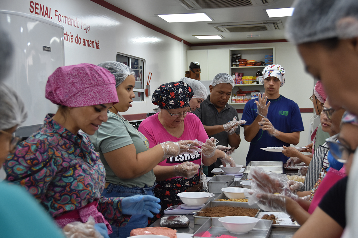 É entre muito leite condensado e pitadas de açúcar de confeiteiro que histórias como estas se encontram e inúmeros planos surgem. Na carreta estacionada no pátio do Senai, no Bairro Amambai, a tarde é de aprendizado, mas também de leveza. Os conselhos da instrutora Mirian Alves para essa turma são para confeitaria, mas os mais de 600 alunos atendidos pelo projeto puderam participar de qualificações nas áreas de panificação, refrigeração, elétrica, logística, segurança do trabalho e marcenaria. A meta é capacitar 1,5 mil pessoas até o final de 2025.