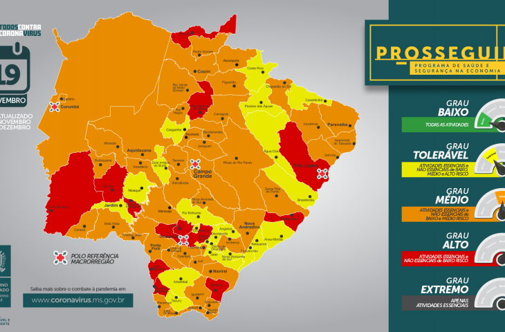 Os mapas situacionais atualizados, recomendações para os municípios e a distribuição das atividades econômicas por faixa de risco, estão disponíveis no site www.coronavirus.ms.gov.br.