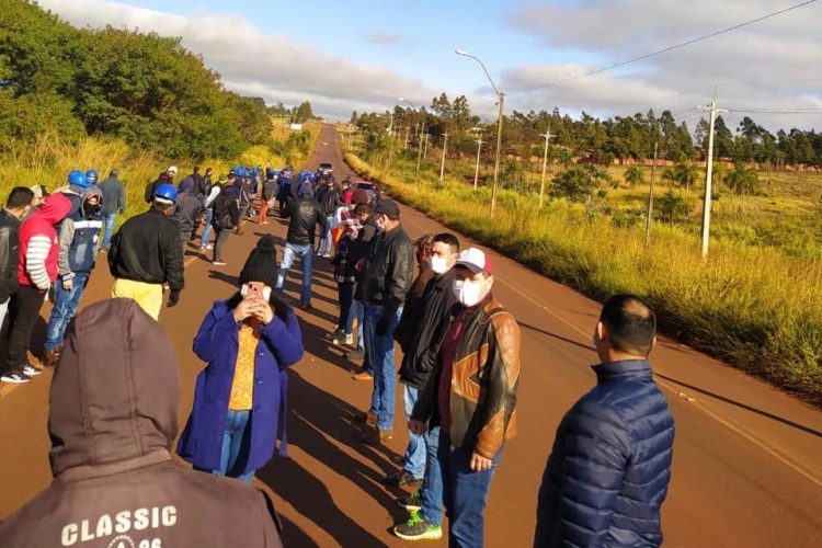 Um grupo de 600 trabalhadores de um frigorífico em Pedro Juan Caballero, no Paraguai, realizam nesta quinta-feira (9) um protesto na fronteira com o Brasil .