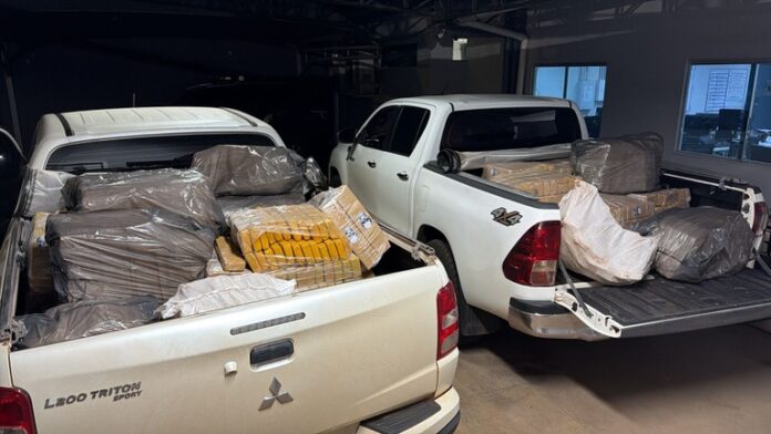 Durante a inspeção técnica no perímetro, os policiais federais identificaram indícios da presença de material ilícito. Ao acessarem o interior do imóvel, encontraram dezenas de tabletes de droga.