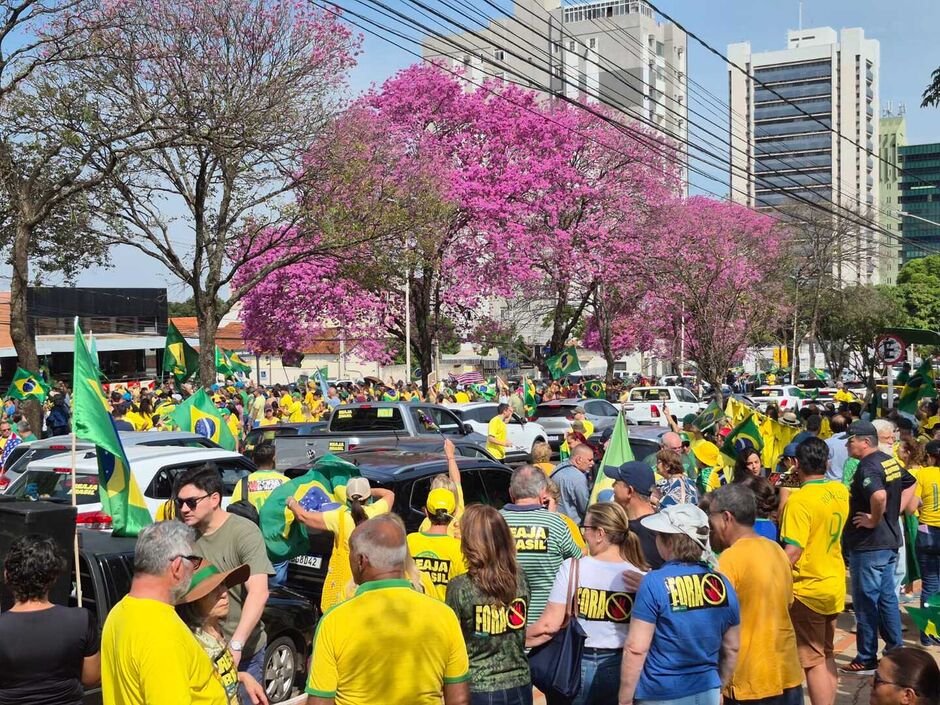 Cartazes e faixas com frases como “Fora Moraes”, “Anistia Já” e “Lula Nunca Mais” tomaram conta da praça, que se tornou ponto de encontro da ala conservadora da capital. Após o ato na Praça do Rádio, os manifestantes seguiram em carreata e buzinaço até o Parque das Nações Indígenas, nos altos da Avenida Afonso Pena.