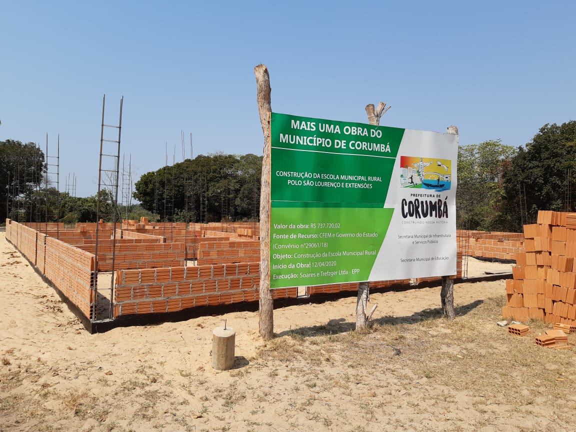A nova Escola São Lourenço está orçada em R$ 792.677,64, sendo financiada pela Semagro (Secretaria de Meio Ambiente, Desenvolvimento Econômico, Produção e Agricultura Familiar), com recursos oriundos do Fundo Estadual de Defesa e de Reparação de Interesses Difusos Lesados (Funles) no valor de R$ 500 mil, e o restante é a contrapartida da Prefeitura de Corumbá.