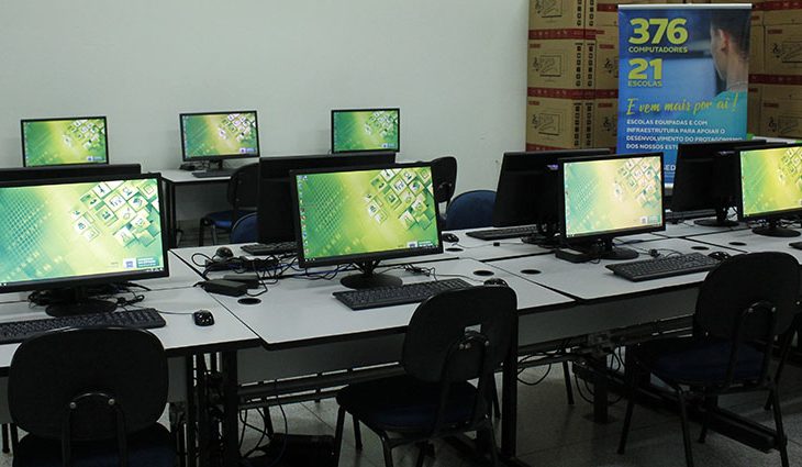 Cada escola recebe 18 microcomputadores. A exceção é a E.E. Luísa Vidal Borges Daniel, da Capital, que vai ganhar 16 unidades em função do número reduzido de salas atendidas, em comparação com as demais escolas relacionadas.