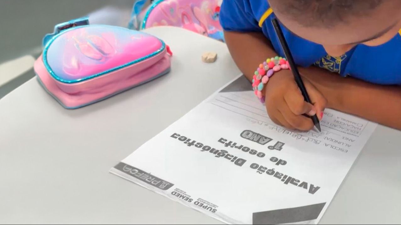 Alunos do 1º ano do Ensino Fundamental da Rede Municipal de Ensino (Reme) participam nesta semana da Avaliação Diagnóstica de Produção Textual. A iniciativa integra as ações de monitoramento da aprendizagem e tem como objetivo subsidiar o planejamento pedagógico e aprimorar as estratégias de ensino voltadas à alfabetização.