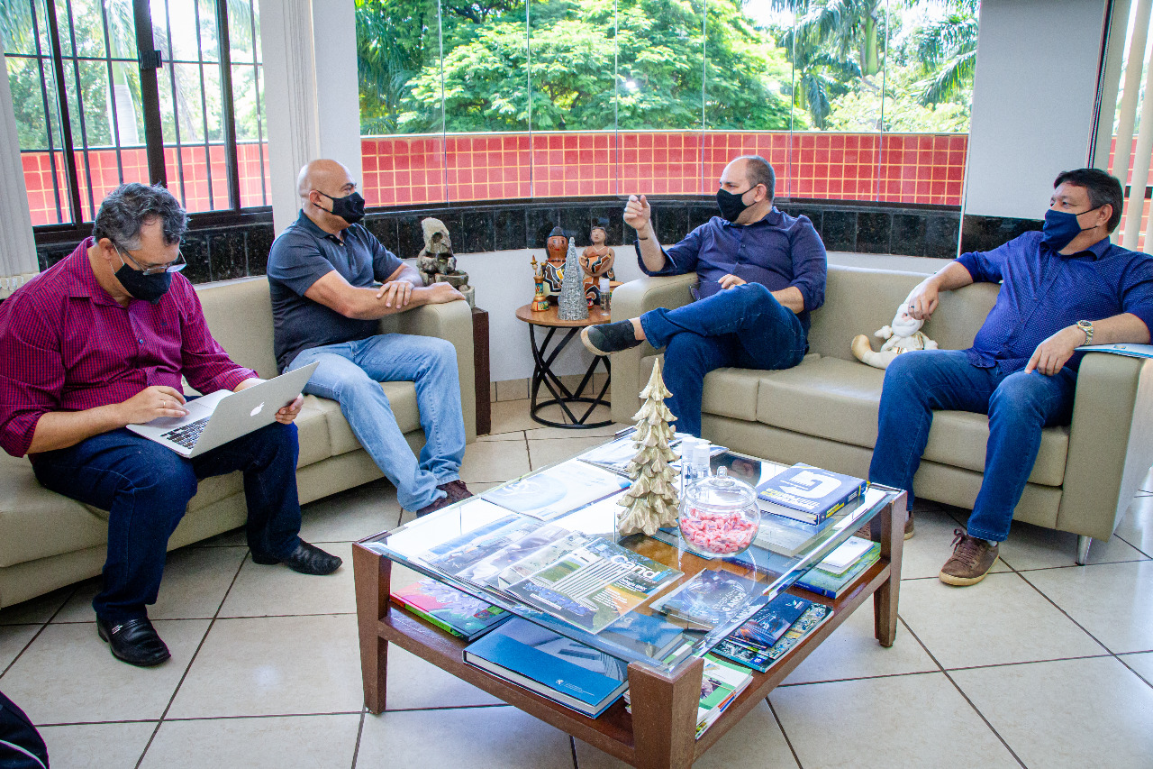 Na manhã desta terça-feira (28), o reitor Marcelo Turine e os pró-reitores de Administração e Infraestrutura, Augusto Malheiros; e de Extensão, Cultura e Esporte, Marcelo Fernandes receberam o vereador Ronilço Guerreiro e o assessor Eldo Moro. Na reunião foram abordadas as possibilidades de parcerias em diversas realizações, como os projetos de livros disponibilizados para empréstimo nos terminais de ônibus da cidade; o projeto “Freguesia do Livro”, levado às feiras da capital e o projeto “Livro na Mão, bola no Pé!”, realizado no Bairro Parque do Sabiá, entre outros.