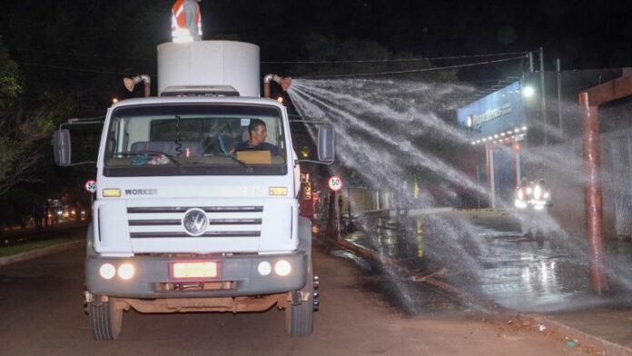 A Prefeitura de Campo Grande promoveu na noite de ontem (9) a retomada das ações de desinfecção das principais vias da Capital. A primeira via a ser desinfectada será a Rua da Divisão, principal via de comércio do Bairro Parati, região do Anhanduízinho, a mais povoada da cidade.