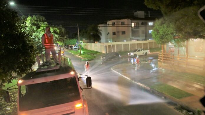 Ruas e avenidas do bairro Tiradentes e São Lourenço são desinfectadas