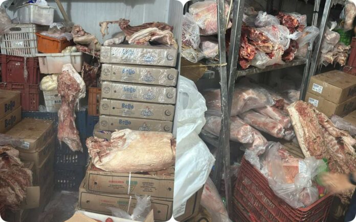 Ao todo, foram apreendidos 1.081kg de carne bovina, 212kg de linguiça artesanal, 41kg de coração de boi, 41kg de frios, 272kg de carne suína, 235 salsichas vencidas a mais de três meses, 58kg de frango, 32kg de calabresa e 538kg de peixes de produção ilegal.
