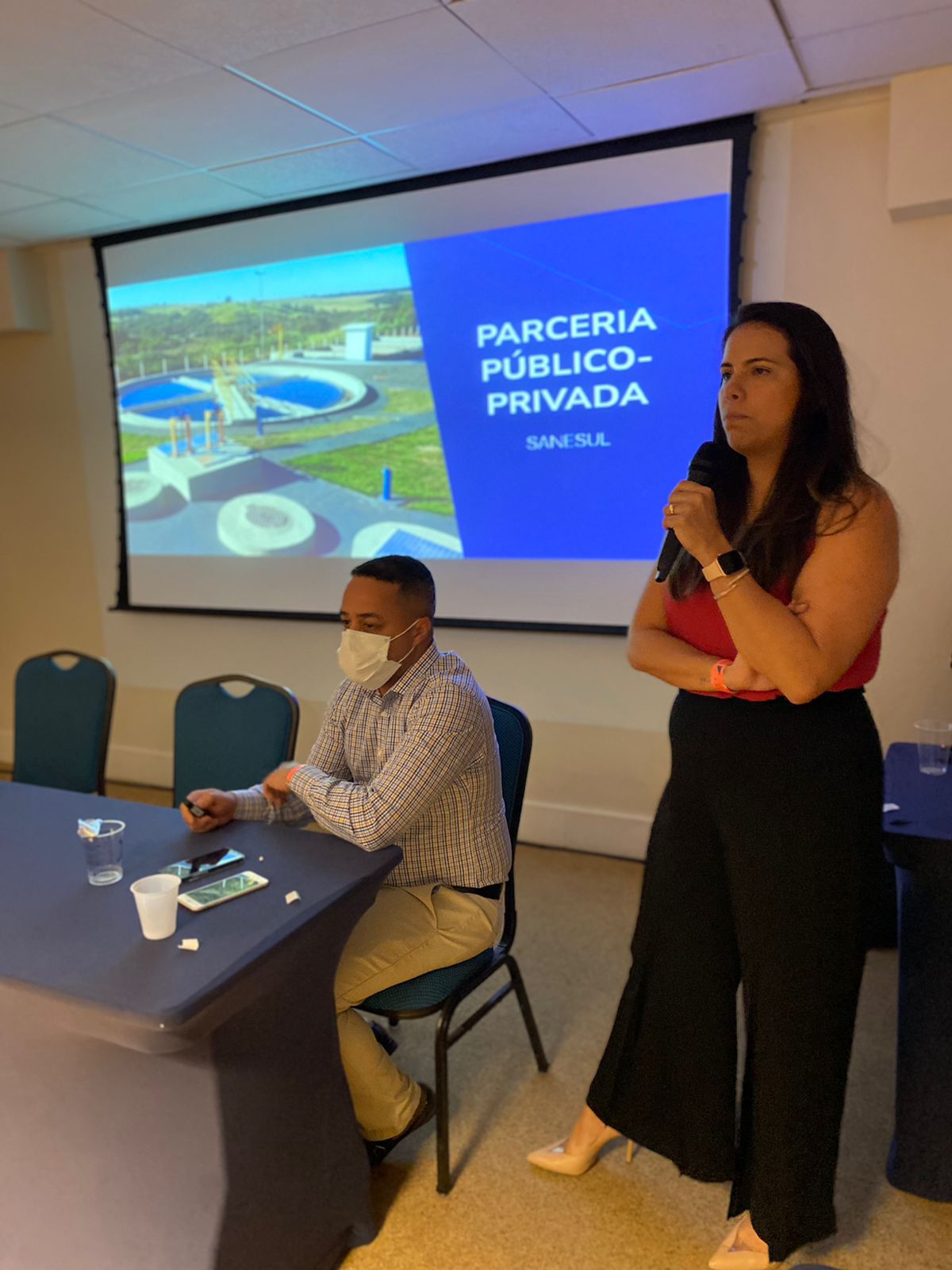 A PPP, feita na modalidade de concessão administrativa, terá duração de 30 anos e será responsável por levar coleta e tratamento de esgoto para 68 cidades. “Transferimos a operação, manutenção, implantação e ampliação do sistema de esgoto de todos os 68 municípios operados pela empresa, mantendo sob nosso controle a gestão comercial dos serviços. A ideia foi compartilhar com os colegas a importância que essa modelagem teve para a Sanesul, principalmente com a posterior edição do Decreto que exige a comprovação da capacidade econômica da companhia em universalizar os serviços, o que nos garantiu a segurança de atingir as metas estipuladas no Decreto”, afirmou a advogada Daniela Cance durante a apresentação.