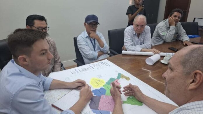 A reunião técnica foi conduzida pelo gerente regional da Sanesul em Dourados (GERDO), Klinger Rodrigues Pires Junior, com participação do supervisor da unidade local, Álvaro Calábria, do fiscal de obras, Maurício Arruda, e dos representantes empresa, que apresentaram ao prefeito Lucas Foroni o cronograma das ações previstas.