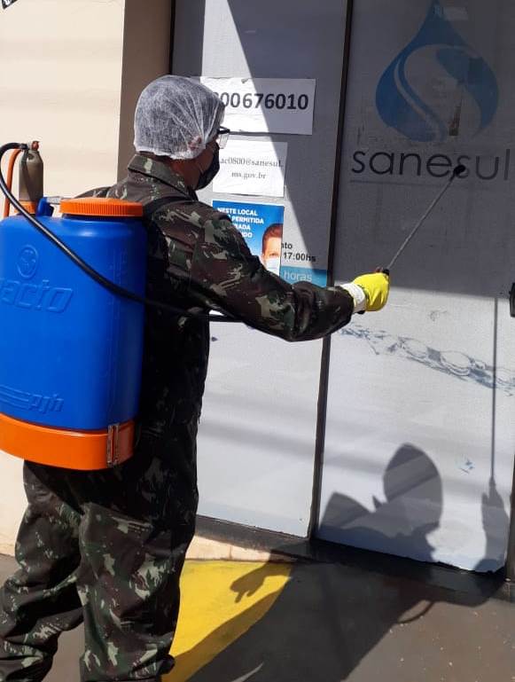 Pensando na prevenção e bem estar de empregados e clientes, a direção da Empresa de Saneamento do MS também recebeu a equipe do exército para ação de desinfecção nos escritórios de atendimento em Dourados. A ação de repetirá também na sede da empresa.