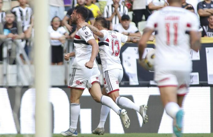 O São Paulo superou o Ceará neste domingo (18) por 2 a 0 na Arena Castelão pela 27ª rodada do Campeonato Brasileiro. Os gols foram de Calleri e Bustos.