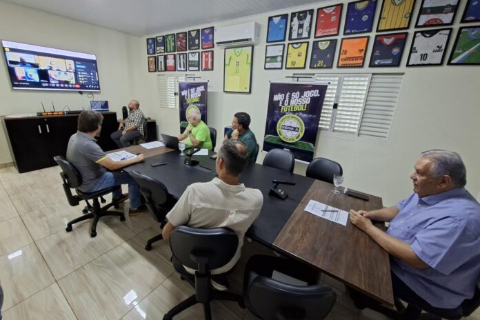 Presidente Estevão Petrallás e equipe da Federação discutiu com dirigentes próximos jogos do Estadual (Foto: Gildo Tavares/FFMS)