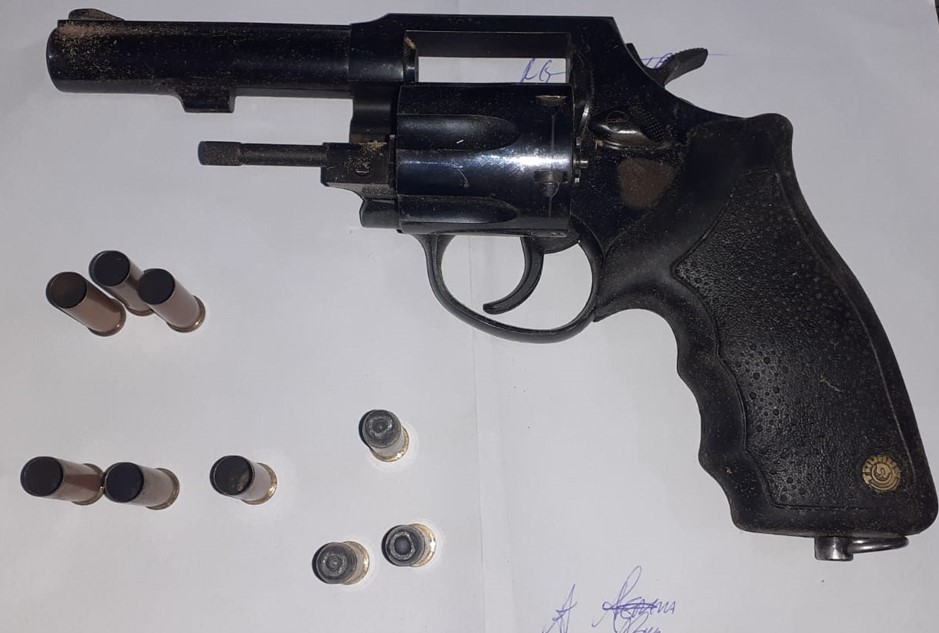 Arma apreendida com seis cápsulas disparadas (Foto: Divulgação/PM)