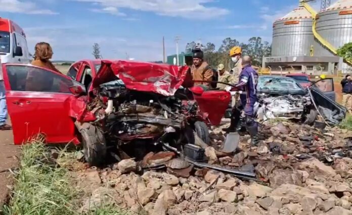 Não há detalhes sobre a dinâmica do sinistro, mas a suspeita é de que um dos carros tentou uma ultrapassagem e acabou invadindo a pista contrária.
