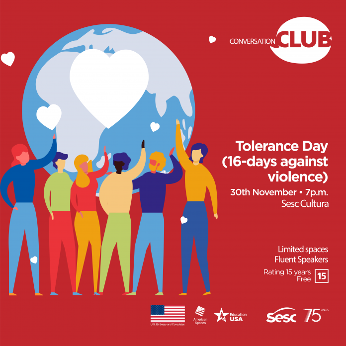 Na próxima terça-feira (30) de novembro, às 19h, o Sesc Cultura realiza o último Conversation Club do ano. O encontro é gratuito e aberto ao público, e nesta edição será presencial, seguindo todos os protocolos de biossegurança, falando sobre a tolerância e violência.