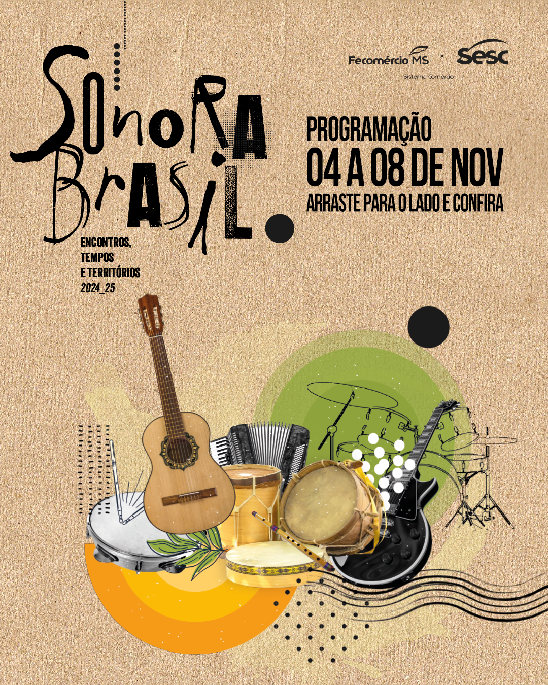 O Sesc Teatro Prosa realiza, de 4 a 8 de novembro, a etapa estadual do Sonora Brasil 2025, projeto nacional do Sesc que neste ano traz o tema “Encontros, tempos e territórios”. As apresentações são gratuitas e têm classificação livre. Os ingressos estão disponíveis no Sympla.