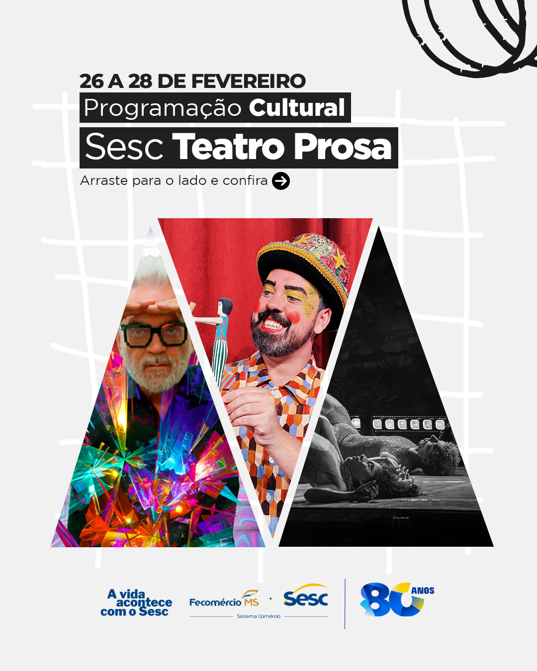 O Sesc Teatro Prosa retoma as atividades em 2026 e volta a movimentar a cena cultural de Campo Grande com três dias de programação entre 26 e 28 de fevereiro.