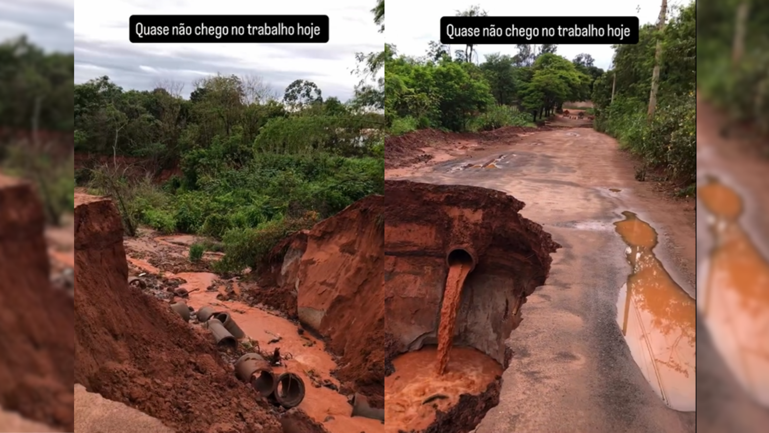 Até parece uma imagem antiga, mas não é. Acredite, a Estrada SE 1, no bairro Chácara dos Poderes, em Campo Grande, foi engolida por uma cratera novamente. O desmoronamento ocorreu na quinta-feira (13), após um novo temporal que deixou diversos barros alagados.