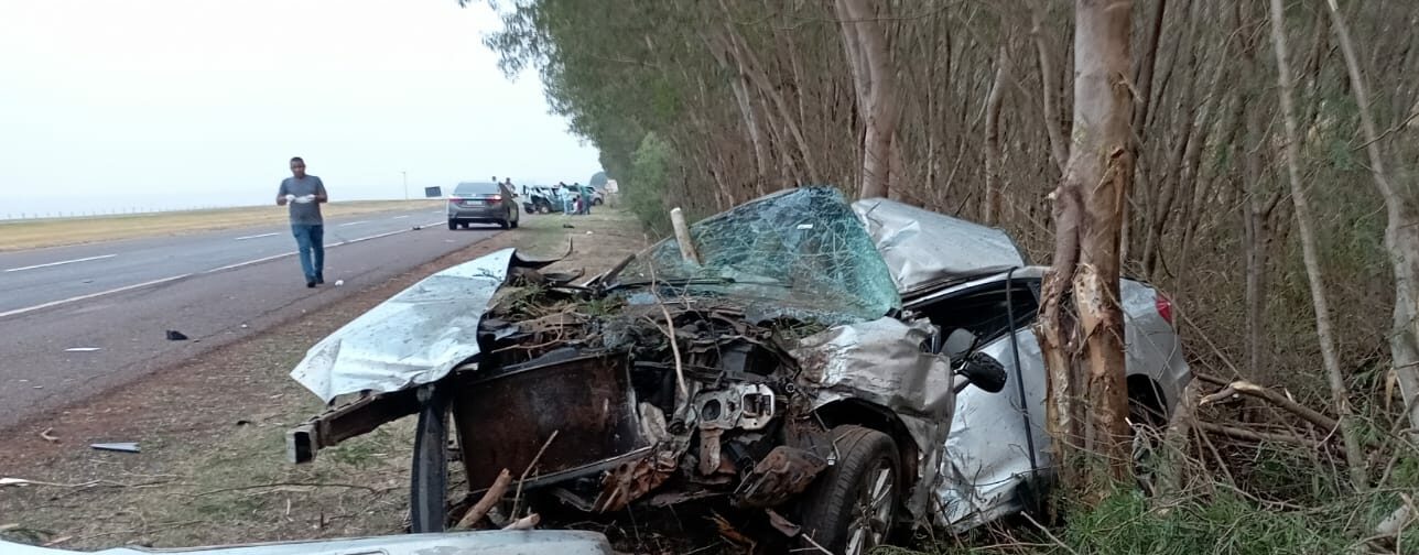 Devido à força da colisão, o Civic saiu da pista e colidiu contra uma árvore, às margens da rodovia. Três pessoas de uma mesma família ocupavam o automóvel.