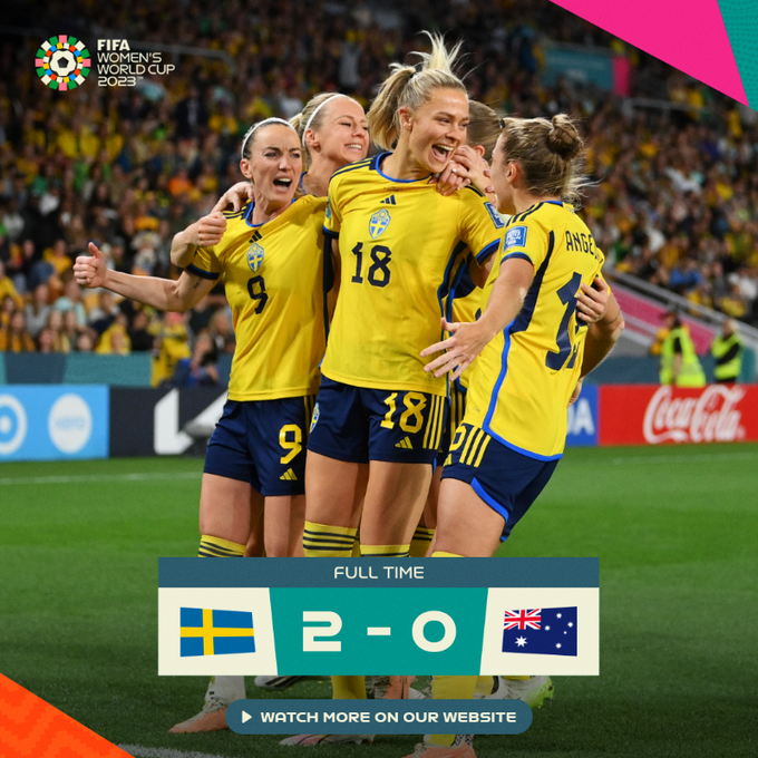 É a quarta vez que as suecas terminam uma Copa em terceiro lugar, repetindo 1991, 2011 e a edição anterior, em 2019. A seleção europeia ainda tem um vice-campeonato em 2003. As australianas alcançaram o top-4 do Mundial de maneira inédita, realizando a melhor campanha da história do país. Mesmo com a derrota, as Matildas (como é conhecida a seleção) saíram de campo aplaudidas, em sinal de reconhecimento.