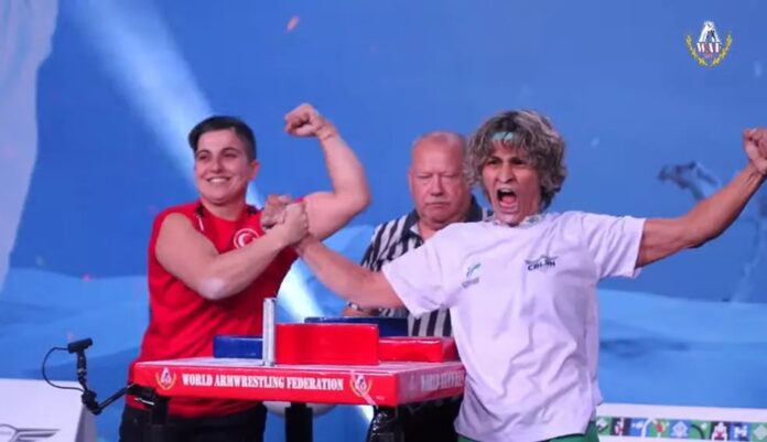 A sul-mato-grossense Crhis Souza, de 62 anos, foi vice-campeã mundial de luta de braço na categoria de 55 quilos, no World Combate Games (Jogos Mundiais de Combate, na tradução), um grande campeonato de artes marciais mistas que está acontecendo nesta semana em Riyadh, na Arábia Saudita.
