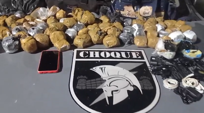 Ao ser vistoriado as bolsas, a equipe policial encontrou maconha, celulares e carregadores, enrolados separadamente por fitas adesivas “Pombos”, a fim de serem arremessados para o interior do presídio.